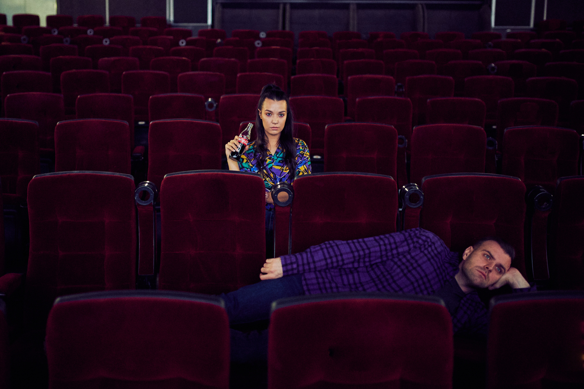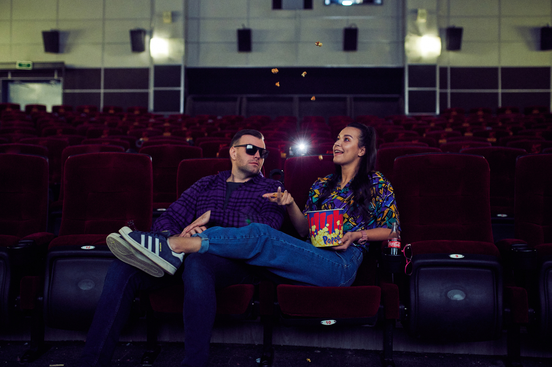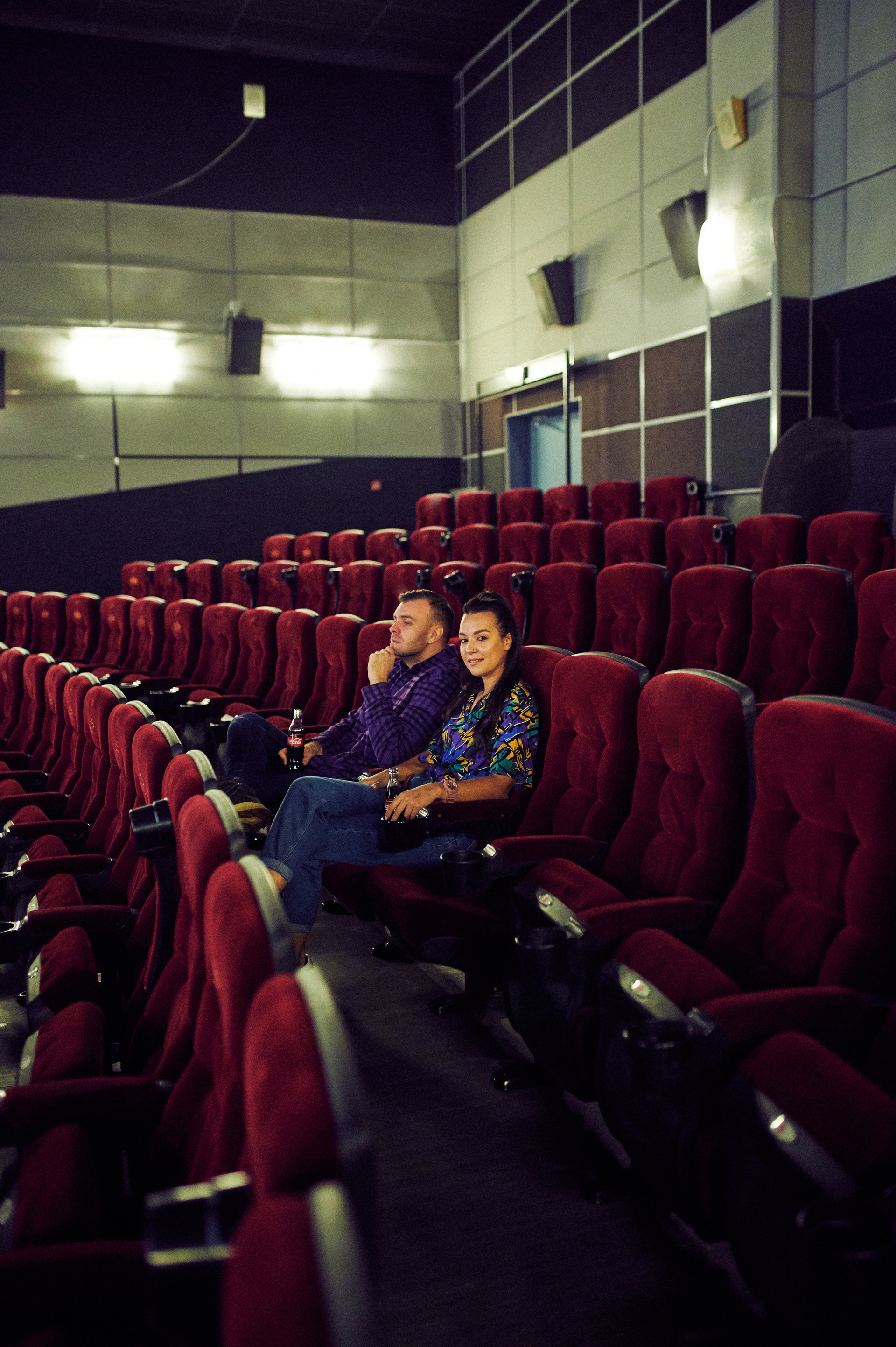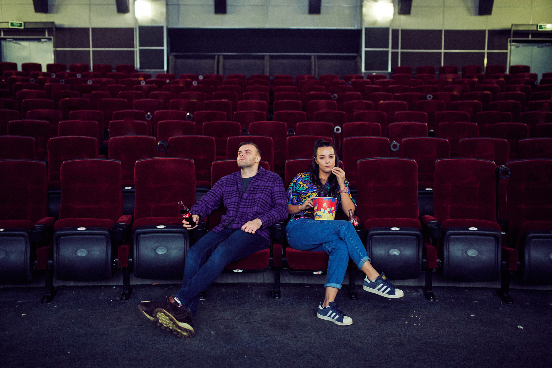 Ксюша и Кирилл. История любви в стилистике «Stranger things». Съемка проходила в настоящем кинотеатре.