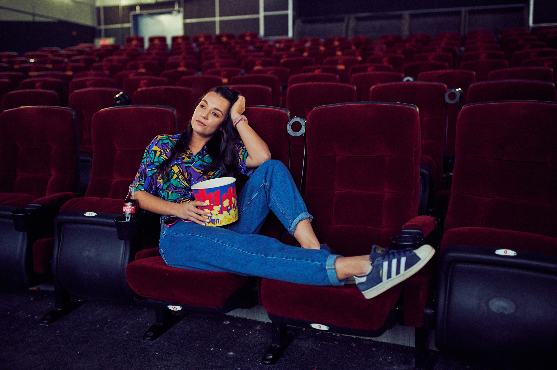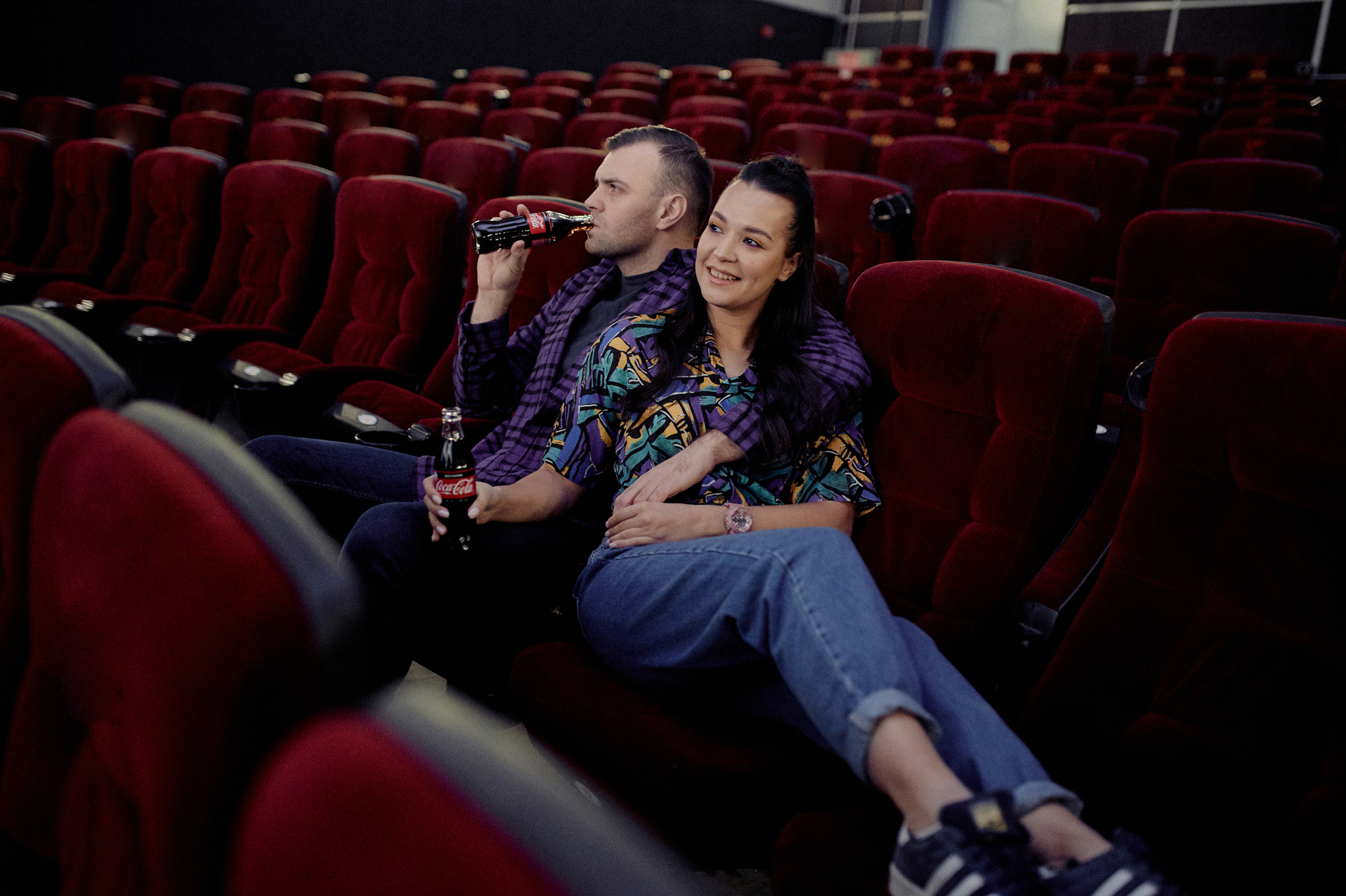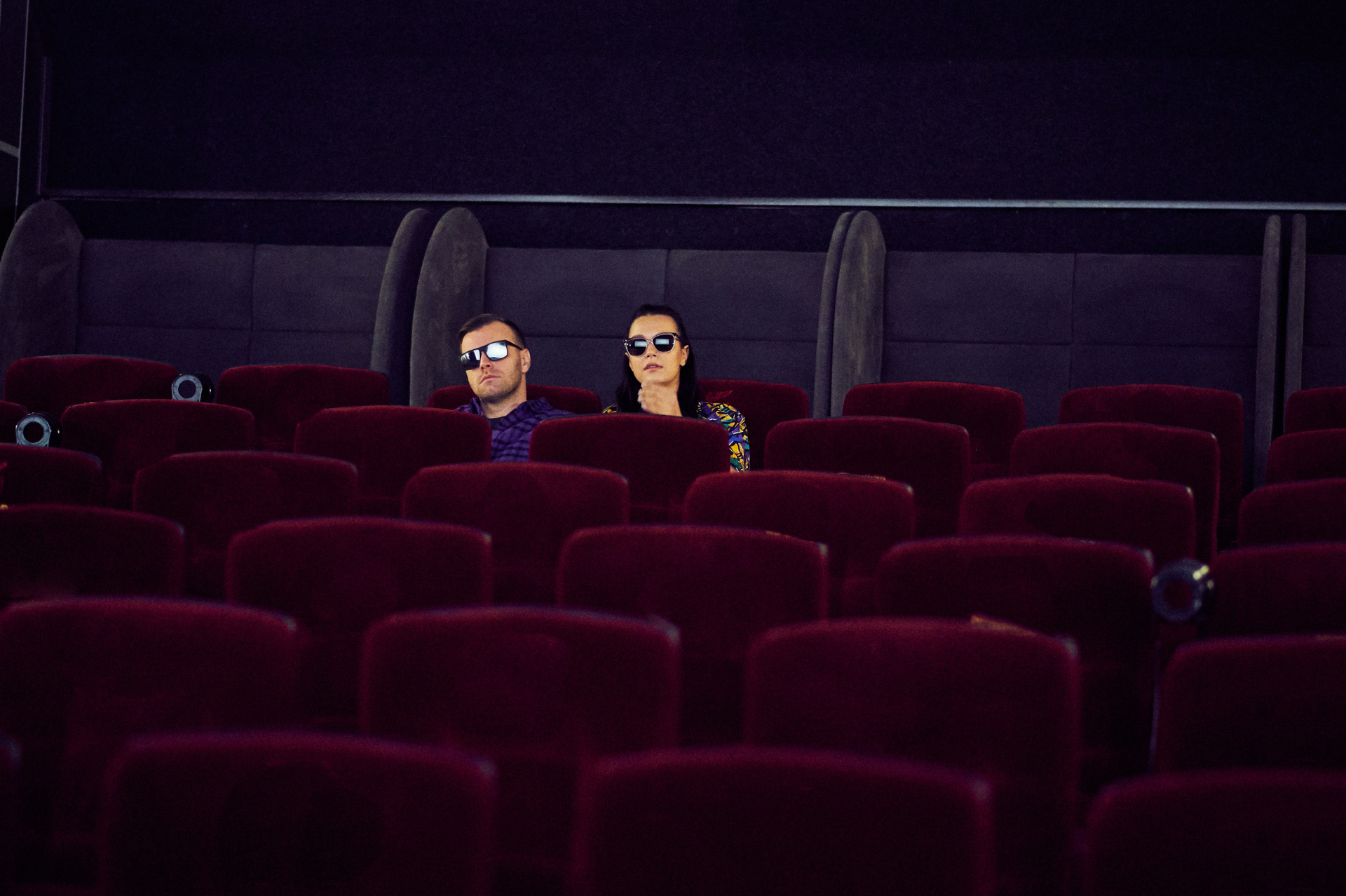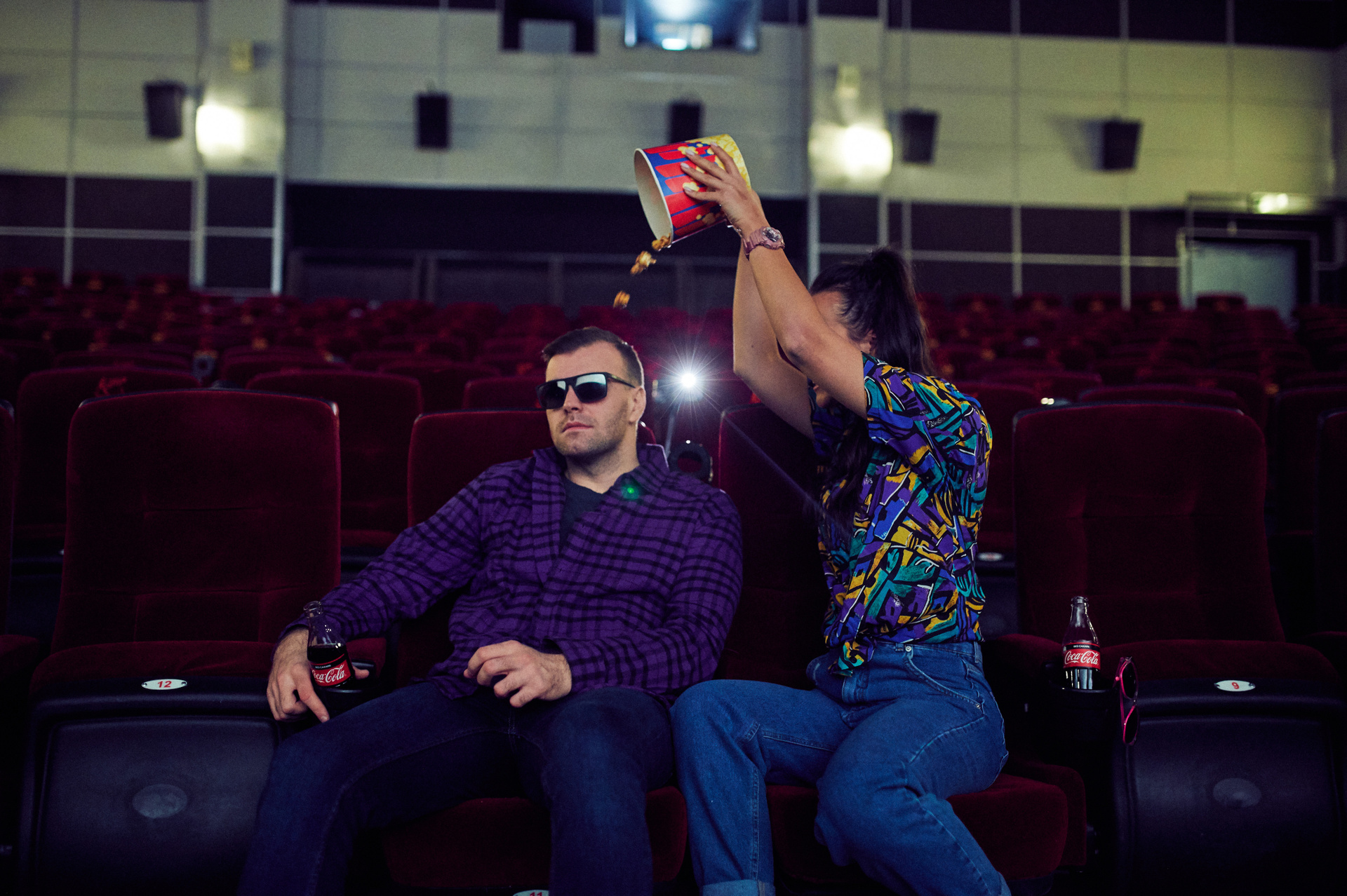 Ксюша и Кирилл. История любви в стилистике «Stranger things». Съемка проходила в настоящем кинотеатре.