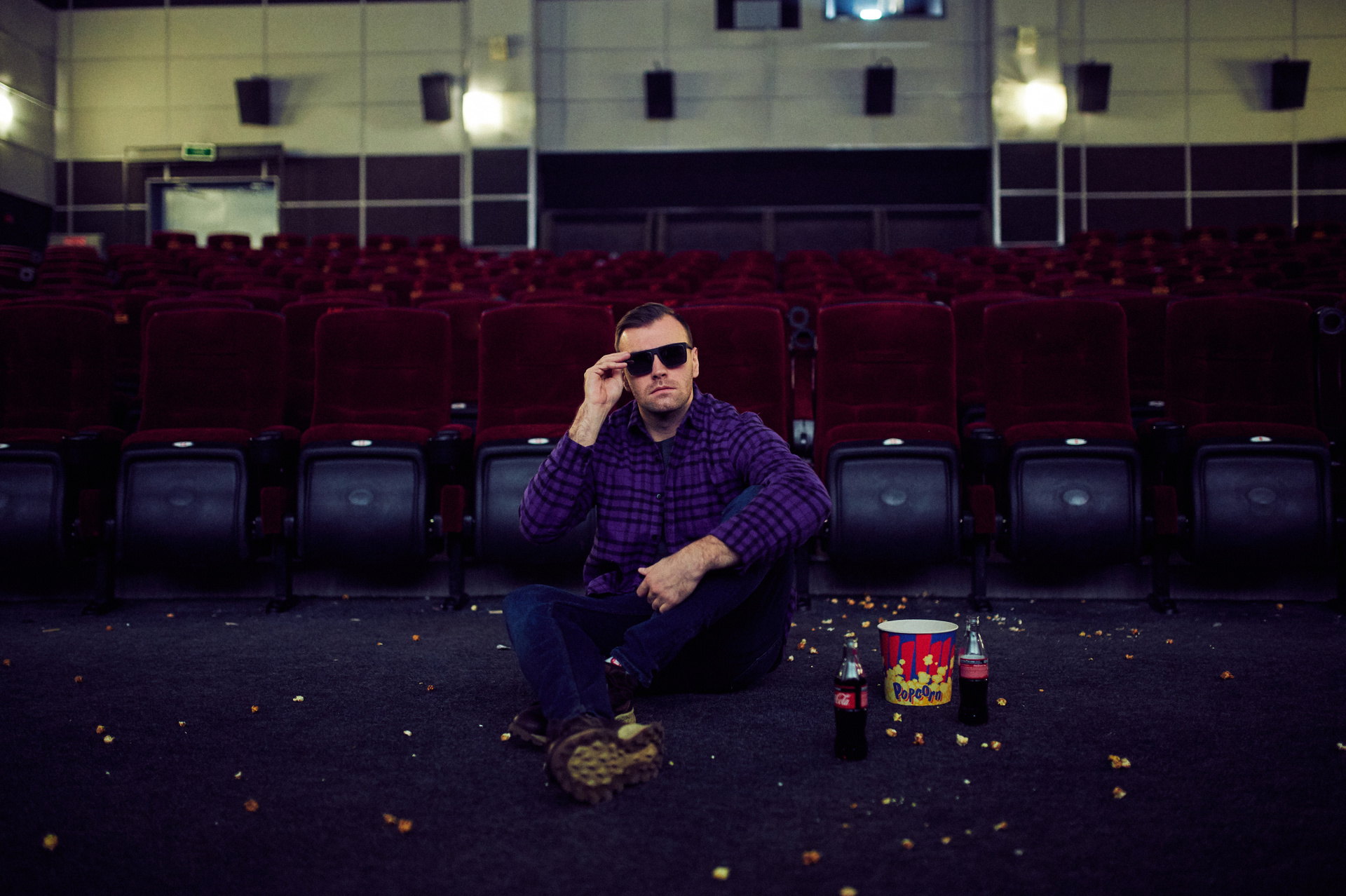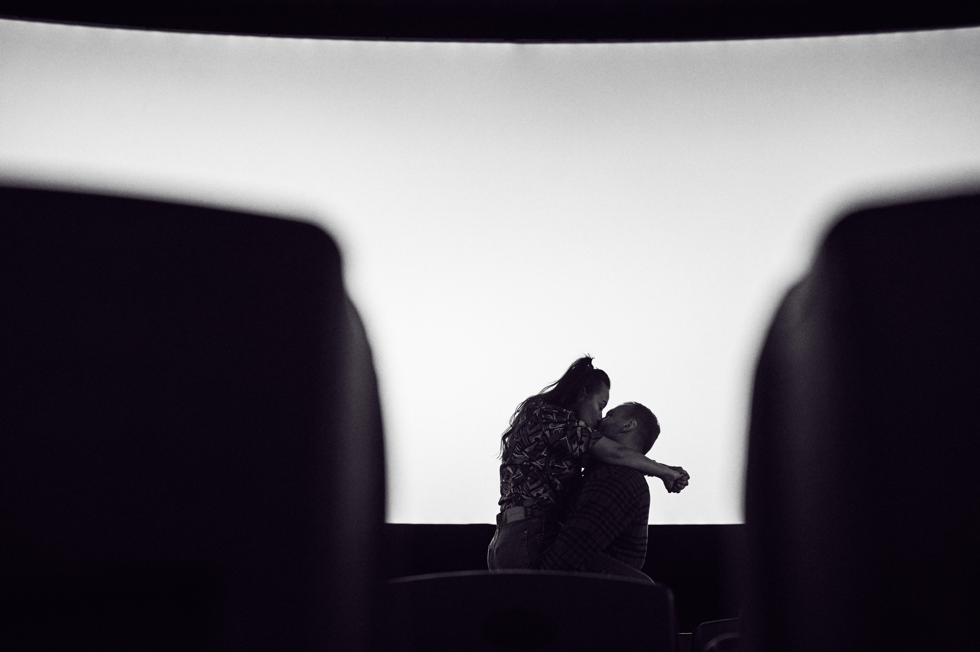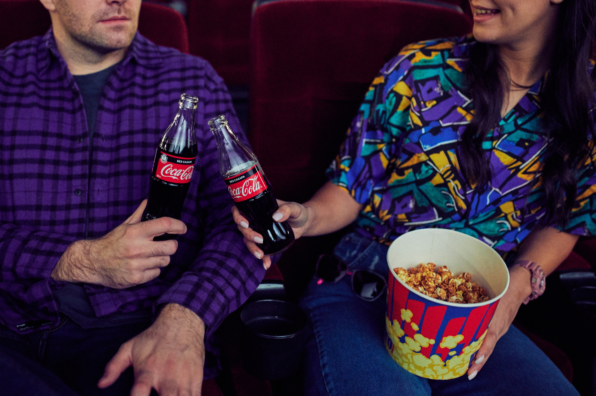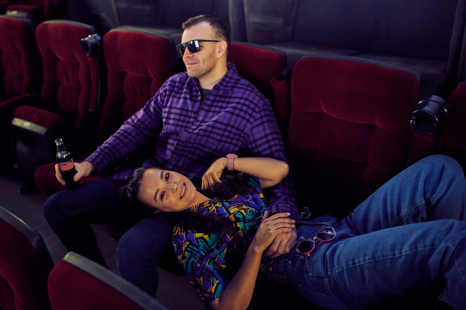 Ксюша и Кирилл. История любви в стилистике «Stranger things». Съемка проходила в настоящем кинотеатре.