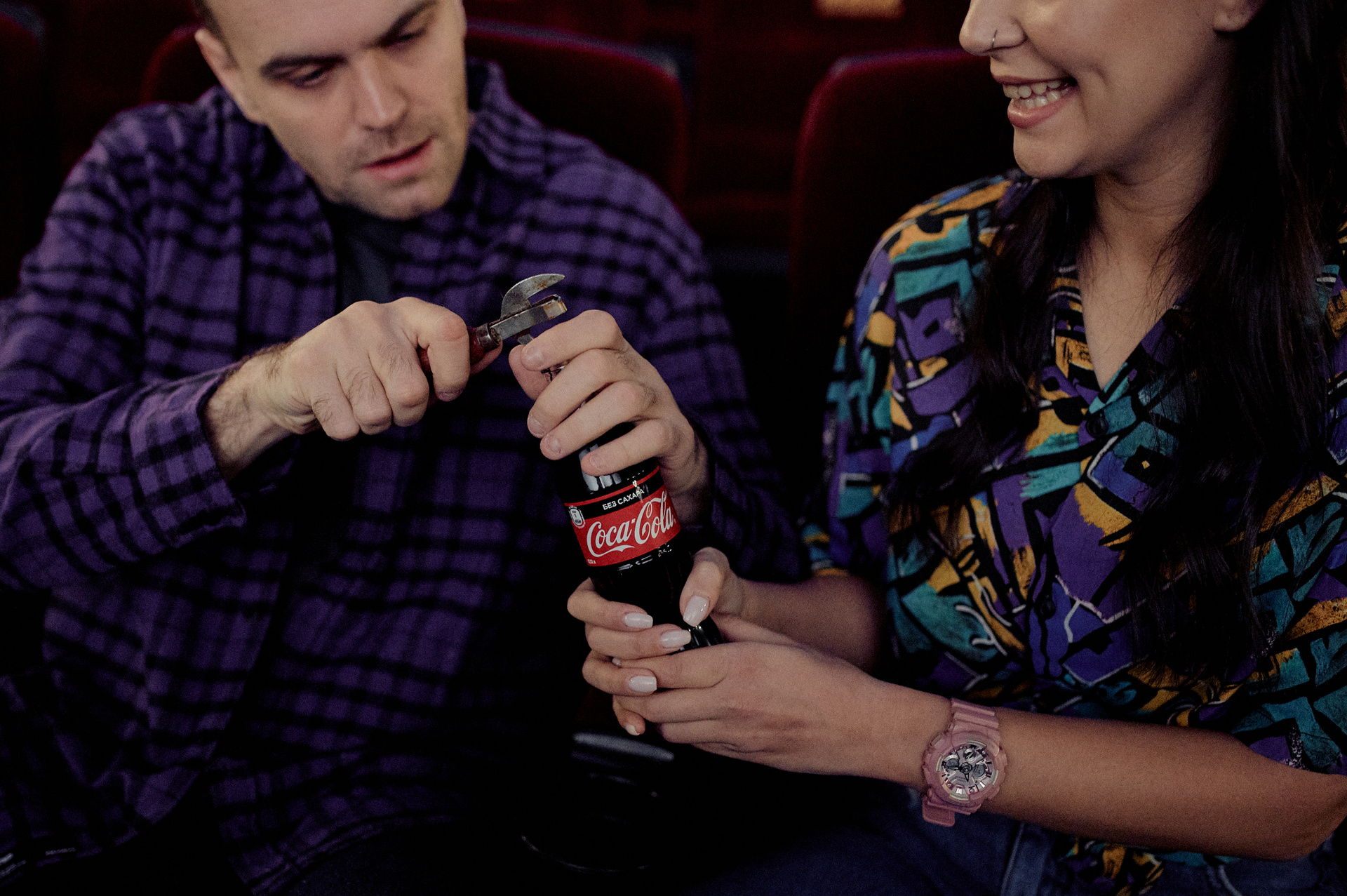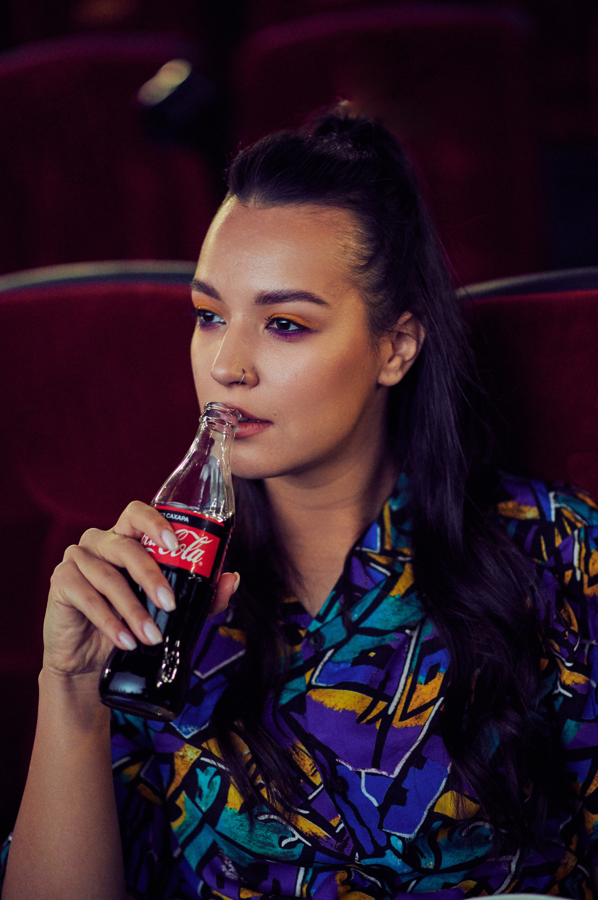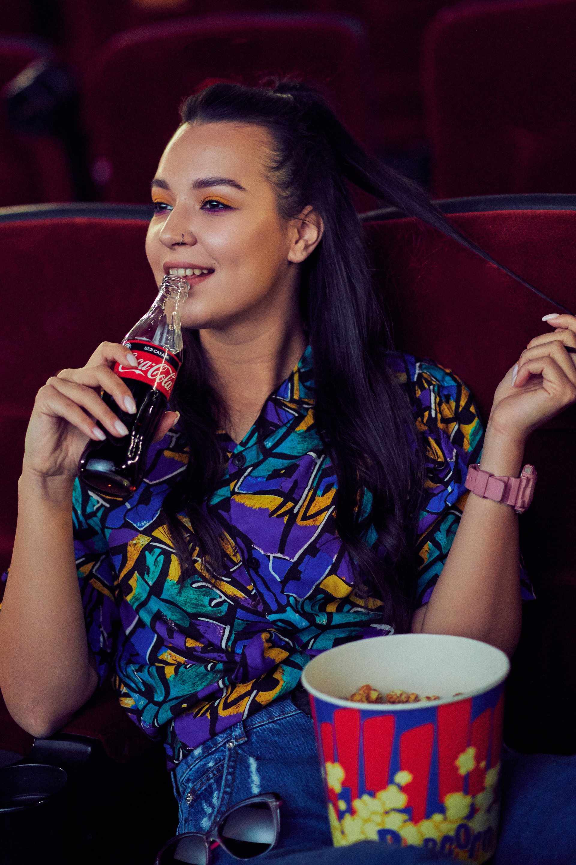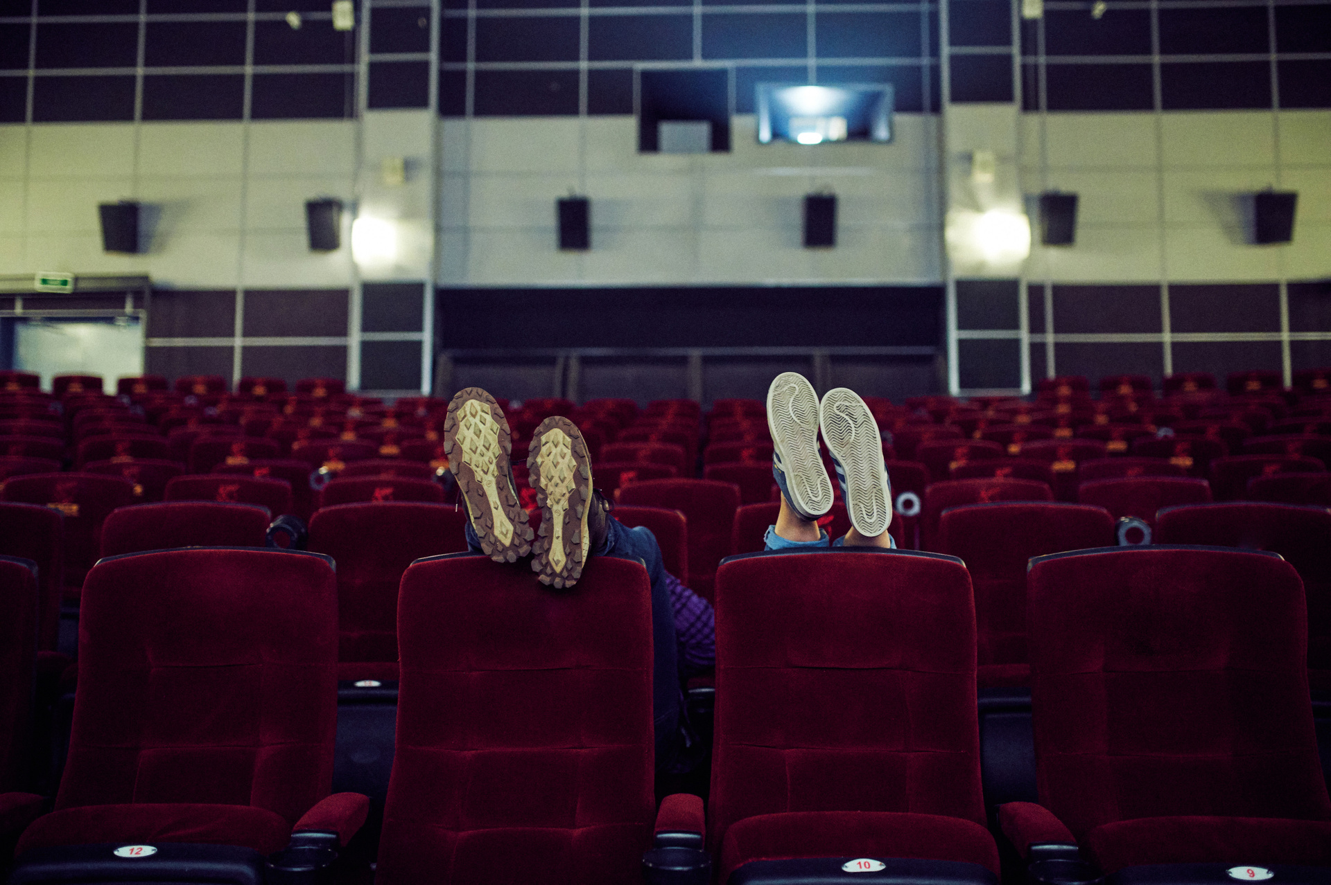 Ксюша и Кирилл. История любви в стилистике «Stranger things». Съемка проходила в настоящем кинотеатре.